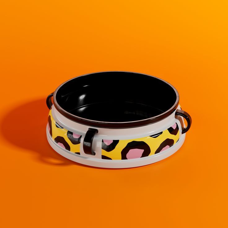 Disegnato da Nathalie Du Pasquier nel 1985, il portafrutta Cauliflower in ceramica è caratterizzato dalla vivace decorazione a pattern a macchie rosa contornate di nero su fondo giallo, dipinta a mano.