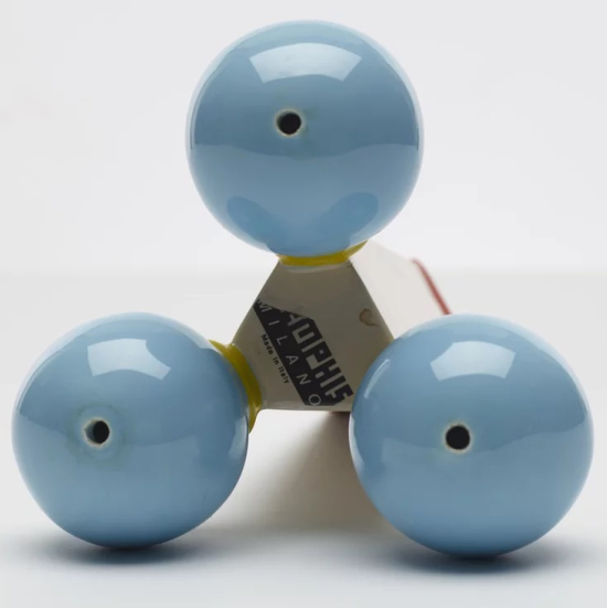 bizzarro con stelo bianco e sfere azzurre alla base, in ceramica sagomata e dipinta a