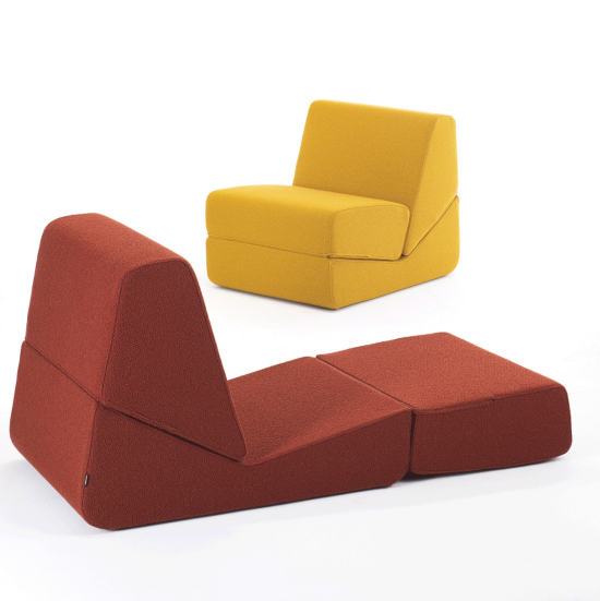 Trasformabile, accogliente e dinamica: Galeotta è una poltrona con cuscini ribaltabili che si apre, si allunga e diventa chaise longue e meridienne. Realizzata interamente in poliuretano espanso a quote differenziate, è priva di struttura di sostegno e meccanismi interni. Si compone di tre blocchi dal profilo irregolare che permettono tre diverse configurazioni, per una postura seduta o semisdraiata con due differenti inclinazioni del modulo schienale. Il rivestimento esterno in tessuto sfoderabile svolge anche la funzione di cerniera durante la trasformazione: tiene uniti i tre elementi della seduta e ne consente il movimento a ribalta. Una poltrona informale e versatile per diverse necessità di comfort e di spazio, ideale sia per la casa che per gli ambienti contract e wellness.